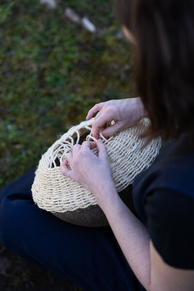 Via mon studio, je travaille à l’élaboration d’un matériau 100% biodégradable fait de déchets verts et façonnable selon les techniques traditionnelles de la céramique. Mon intention est de poursuivre l’exploration de ces savoir-faire au potentiel créatif immense tout en réduisant leur impact écologique : créer autrement, avec un matériau innovant, tout en restant ancrée dans la tradition.